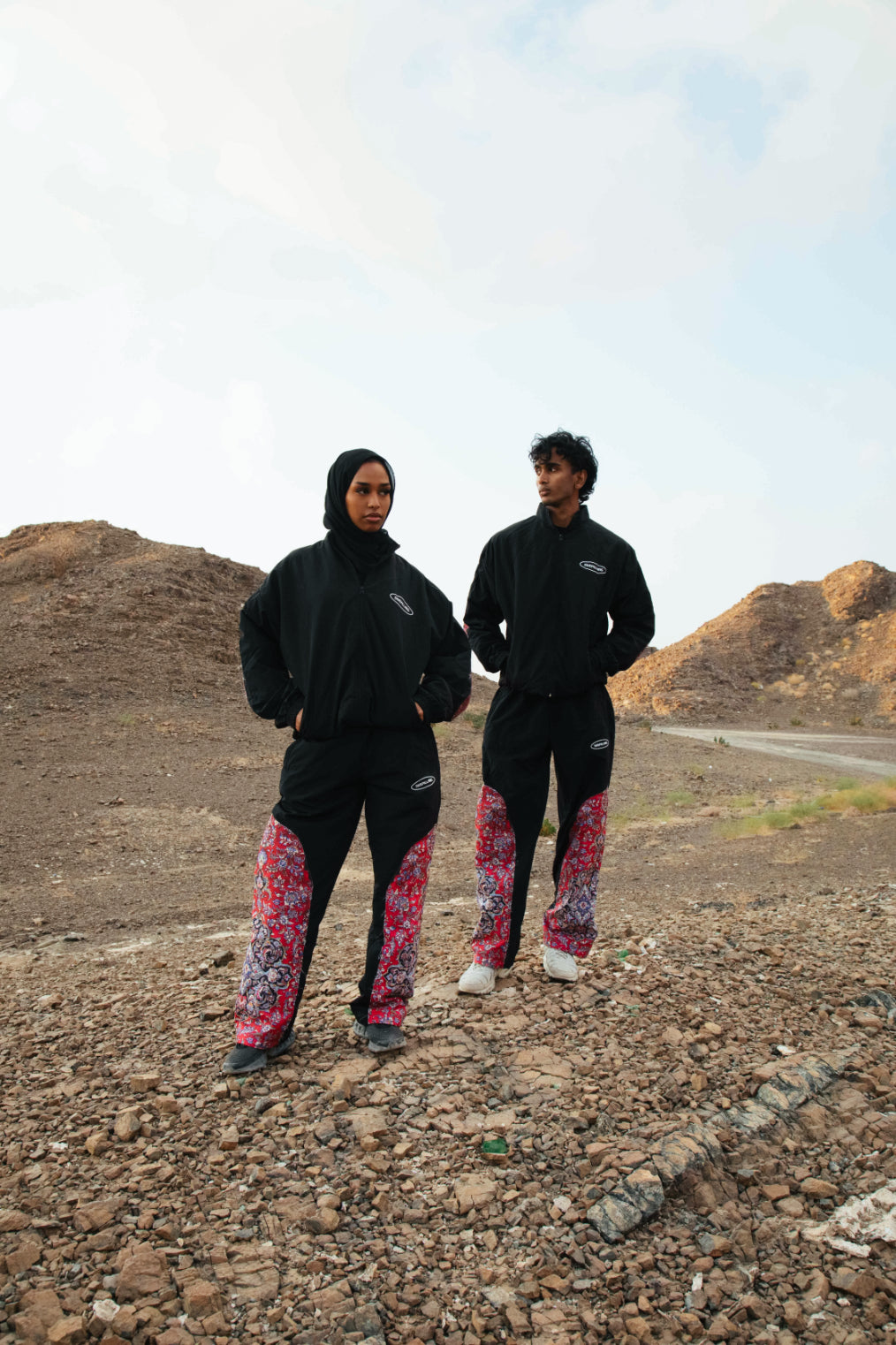 The 5ivepillars Rug Tracksuit is a blending of two histories: the rugs of our grandmothers that we associate with the Arab and Islamic world, with the classic retro tracksuits of the 1980s, popularised by the hip-hop and streetwear cultures of the United States. These two histories have been woven together in celebration, complete with a modern twist.