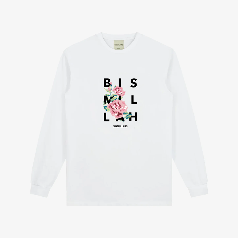 The Bismillah Flower Tee is back after popular demand! In our revamped version, the tees sport the BISMILLAH print with flowers blooming from it, with the 5ivepillars logo below. It is through performing actions in the name of God that beautiful things blossom, and the floral design of the Bismillah Tee represents that in elegant fashion.