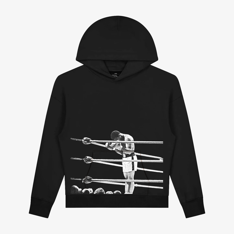 Our Dua hoodie features the iconic image of Ali making dua before his second fight against British heavyweight Henry Cooper in 1966. The fight took place at Arsenal's Highbury Stadium in London, with the photo being captured by renowned German photographer Thomas Hoepker, who had the privilege of following Ali throughout his illustrious life.
