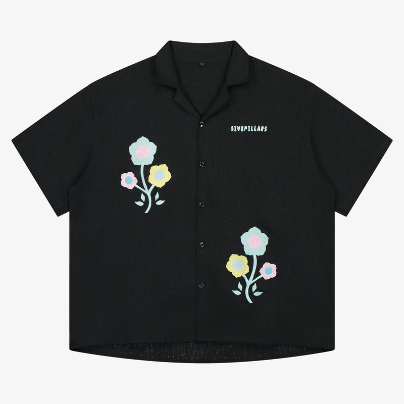 The 5ivepillars Floral Linen Button-Up features fully bloomed flowers, with floral designs symbolizing a new day of hope. All artwork on the button-up is embroidered. Please dry clean to maintain the linen
