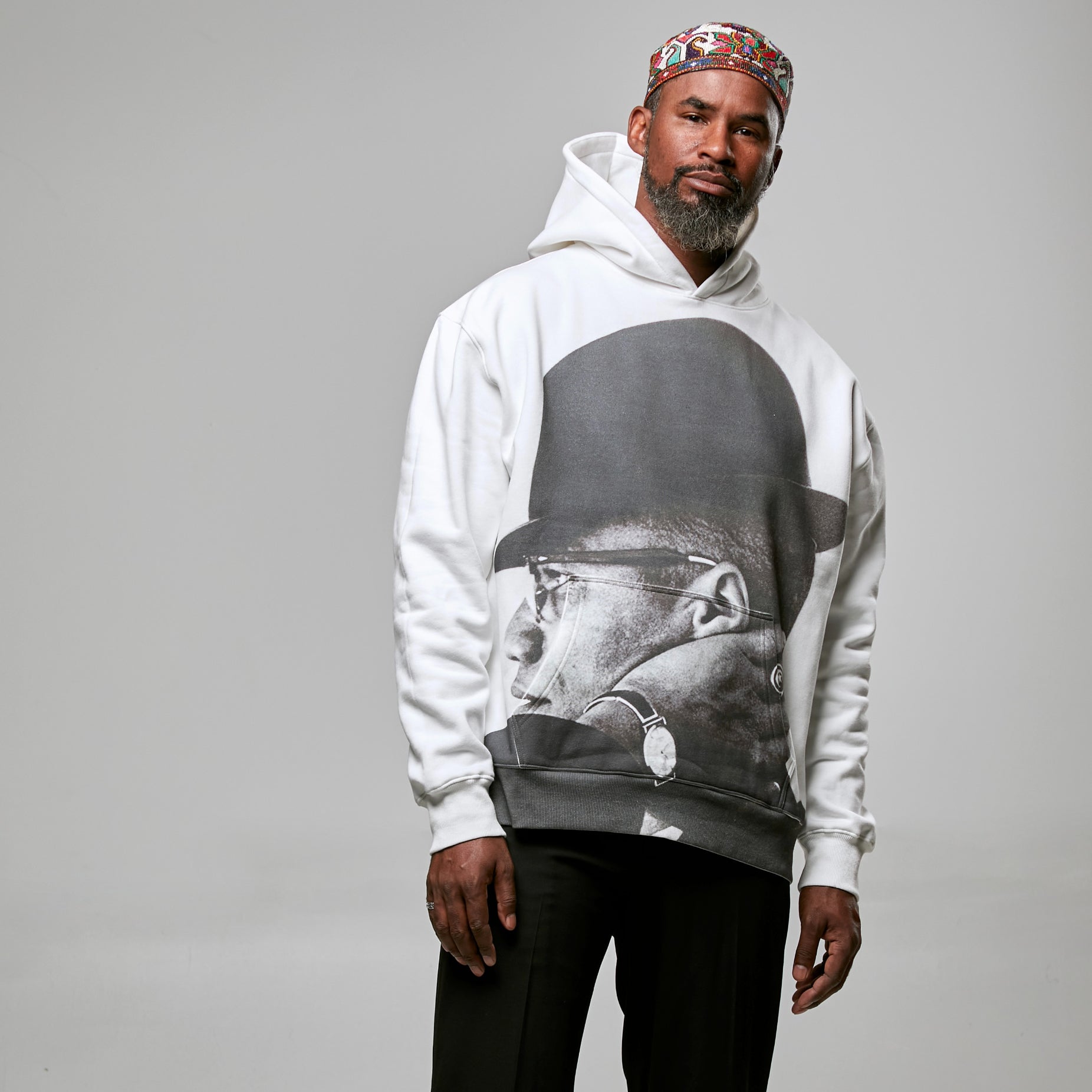 The Malcolm X Hoodie comes in two colors – black and white.