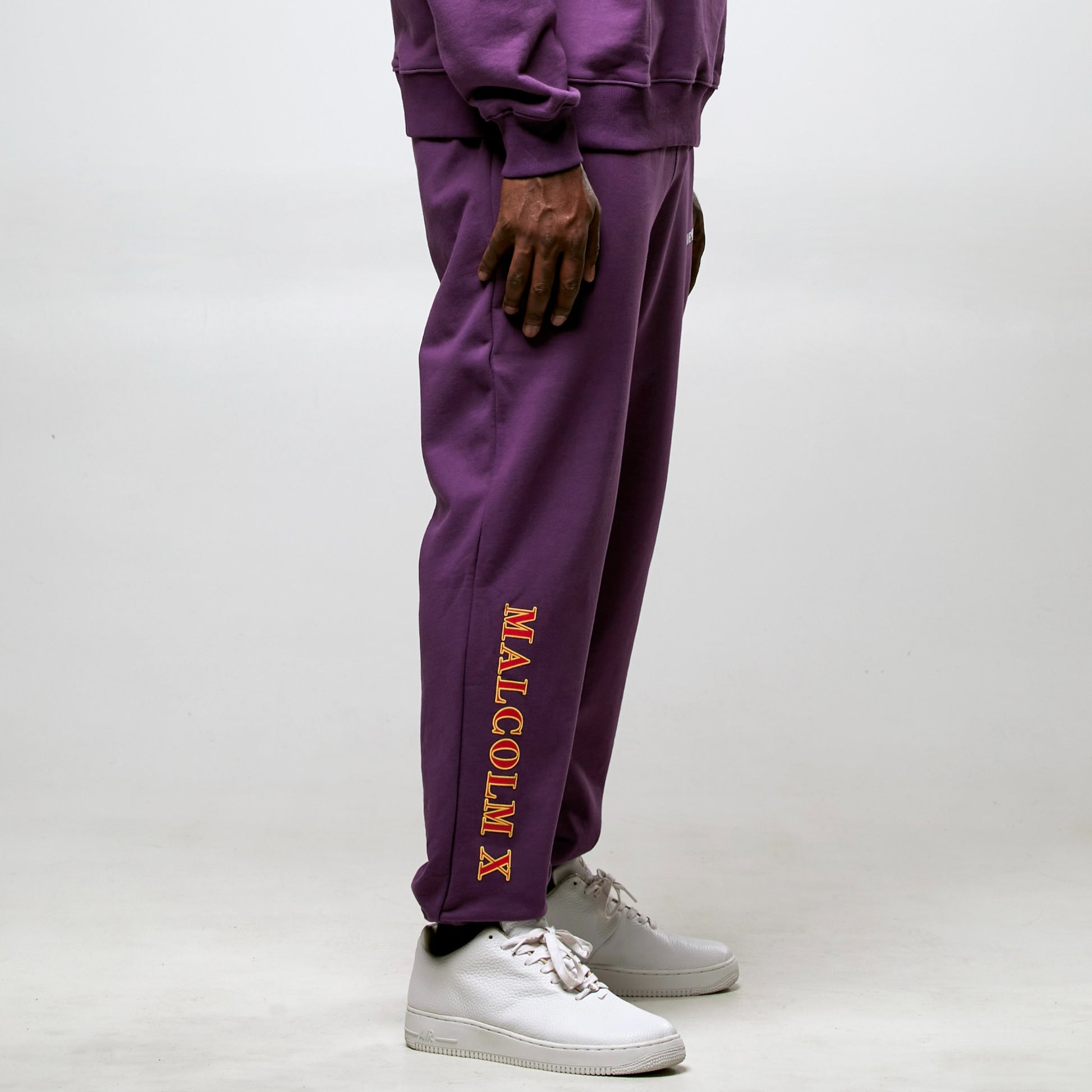 The Malcolm X Sweatpants come in two colors, black and purple, representing the nobility and power of Malcolm and his ultimate message. These sweatpants fit true to size for a modern look and feel.