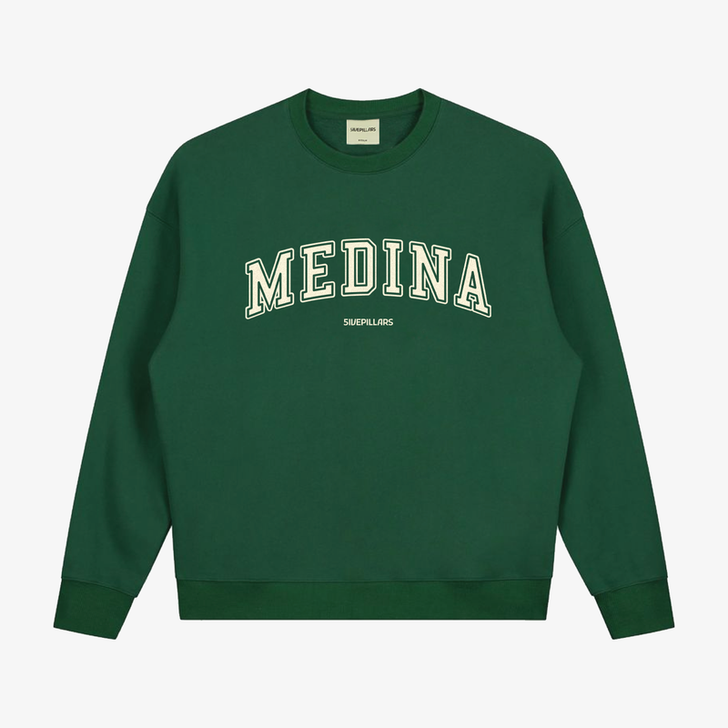 The green of the Medina crewneck represents the colours of the Mosque of our beloved Prophet ﷺ, peace and blessings be upon him. The clothes sport an oversized drop-shoulder fit for a relaxed and comfortable feel.