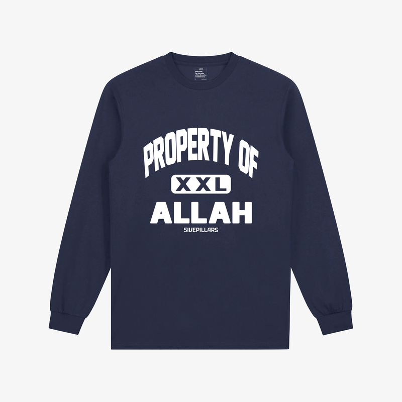 Made with 180 GSM soft cotton fabric, the garment features the Property Of Allah print in original font coupled with the 5ivepillars logo up front. The garment is dyed and enzyme washed for a classic and timeless look. This style comes in an oversized fit with screen printed graphic on the front.