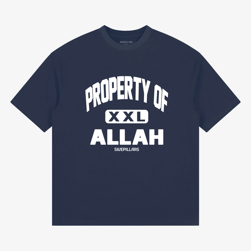 Made with 180 GSM soft cotton fabric, the garment features the Property Of Allah print in original font coupled with the 5ivepillars logo up front. The garment is dyed and enzyme washed for a classic and timeless look. This style comes in an oversized fit with screen printed graphic on the front.
