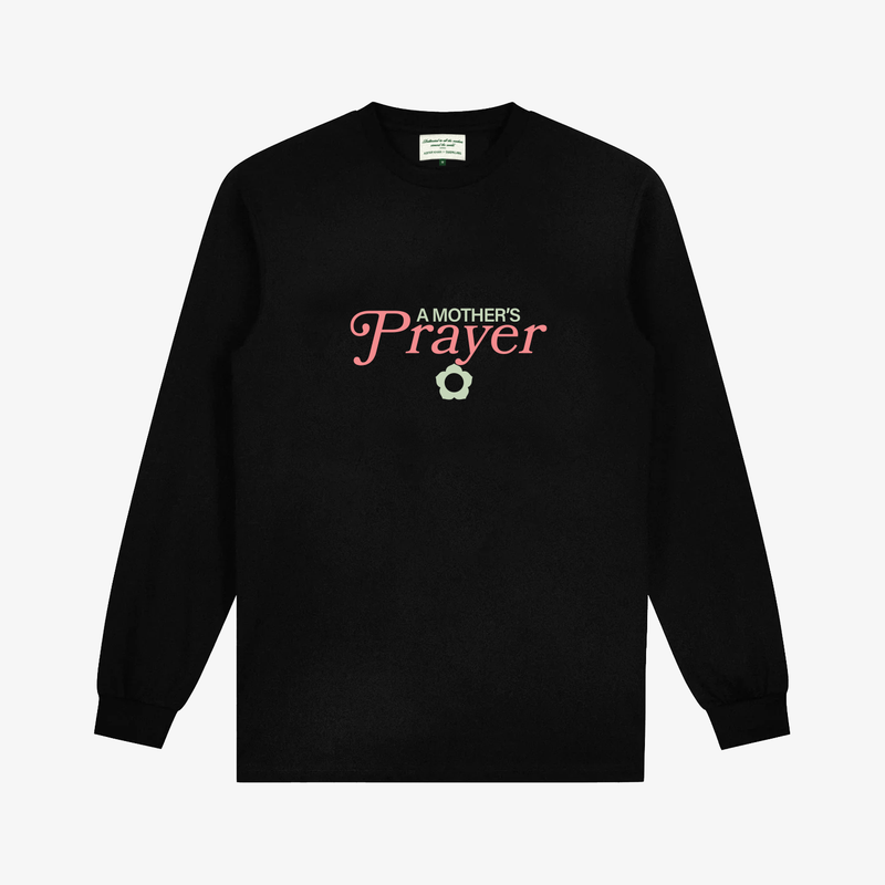 Our A Mother’s Prayer long sleeve tee serves as a reflection of faith and gratitude. The front features the phrase A Mother’s Prayer in soft pastel tones, while the back reads When you have your mother’s prayers, you can stand against the world. A simple yet powerful reminder of the strength found in a mother’s love.
