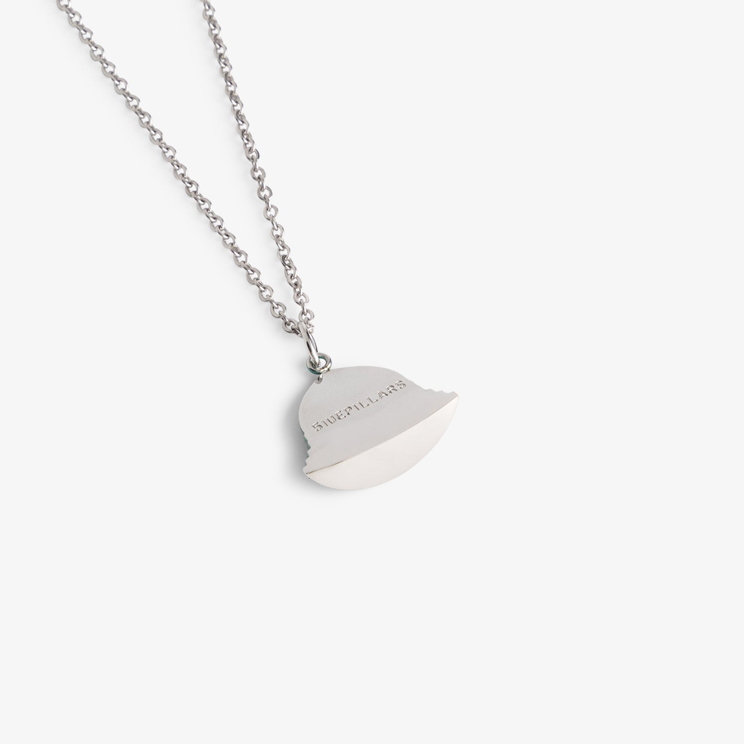 The Green Dome Necklace is a unique item that is part of our collection of fine jewelry. The necklace is a special, one-of-a-kind homage to the green dome of the Mosque of our beloved Prophet ﷺ. The design features lab created gemstones on a stainless steel plate, coupled with the 5ivepillars logo stamped on the back.