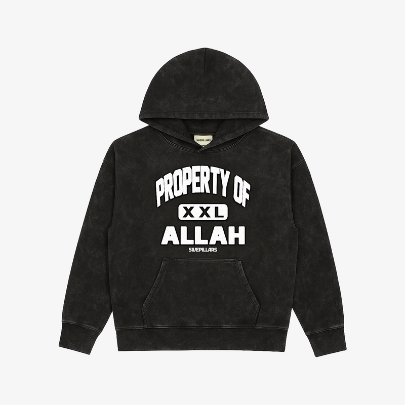 Revamped for the modern-day, these hoodies are made with 400 GSM french terry cotton, featuring the Property Of Allah print in original font coupled with the 5ivepillars logo up front. The garment is dyed and enzyme washed for a classic and timeless look.